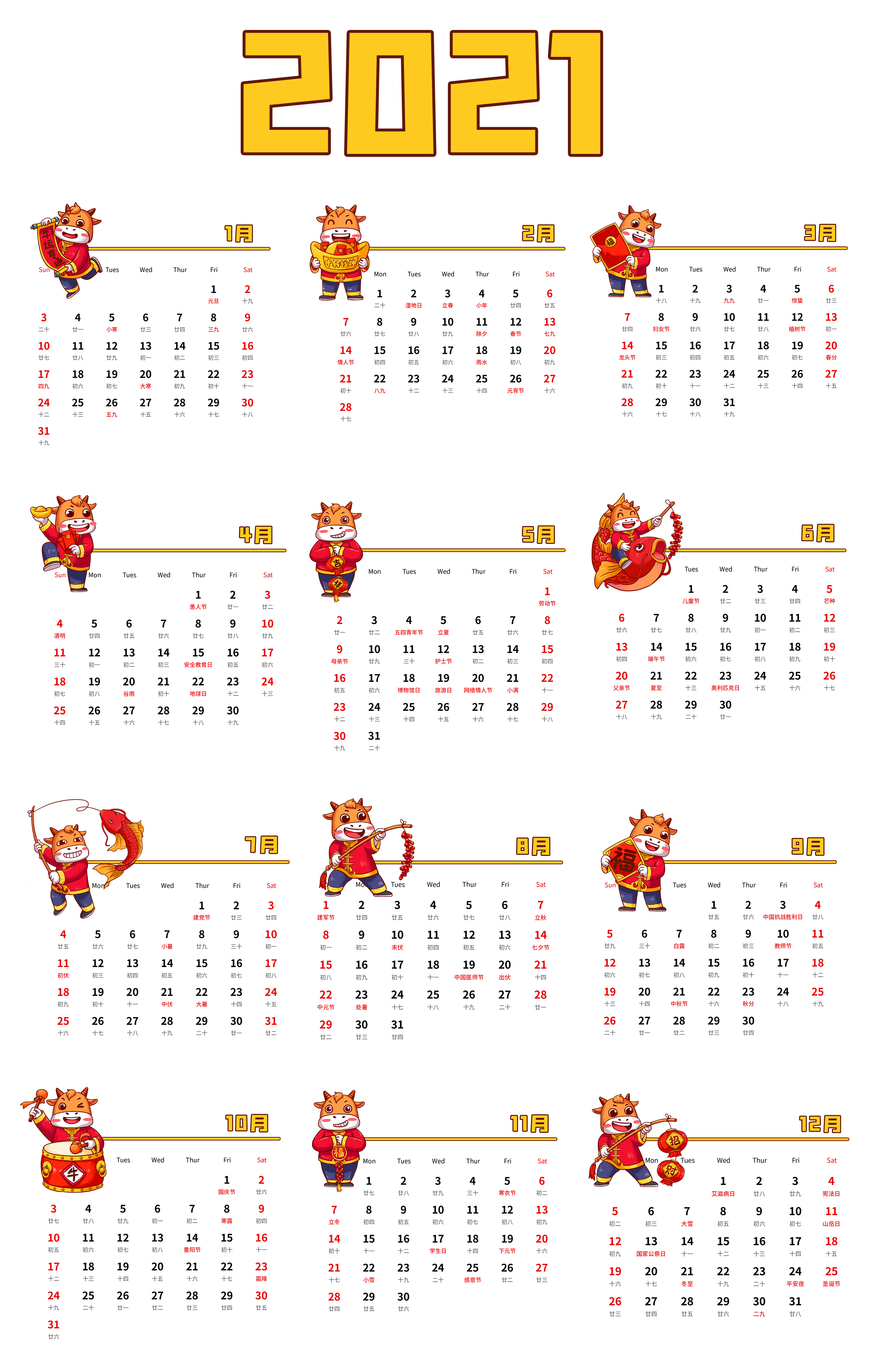2021年节假日放假安排与新年日历,预祝大家新年快乐!
